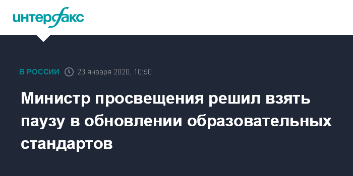 Москва. 23 января. INTERFAX.RU - Министр просвещения Сергей Кравцов решил взять паузу с вопросом о принятии федеральных государственных образовательных стандартов (ФГОС), которые продвигала его предшественница Ольга Васильева и которые вызвали споры. Он сказал это в интервью "Московскому Комсомольцу".