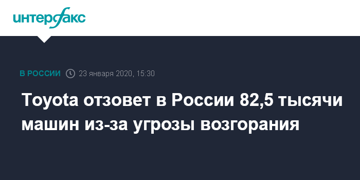 Toyota отзовет в России 82,5 тысячи машин из-за угрозы возгорания