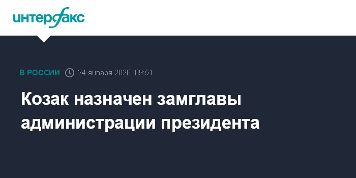 Москва. 24 января. INTERFAX.RU - Президент Владимир Путин назначил бывшего вице-премьера Дмитрия Козака заместителем руководителя администрации президента. Такой указ опубликован на сайте Кремля.