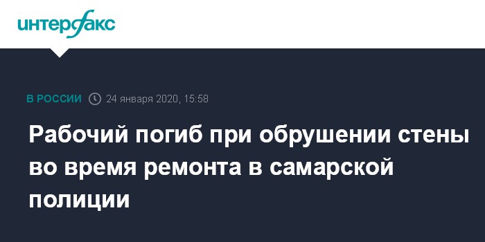 Москва. 24 января. INTERFAX.RU - Один рабочий погиб, второй получил травмы при обрушении кирпичной стены во время ремонта в отделе полиции города Чапаевск в Самарской области.