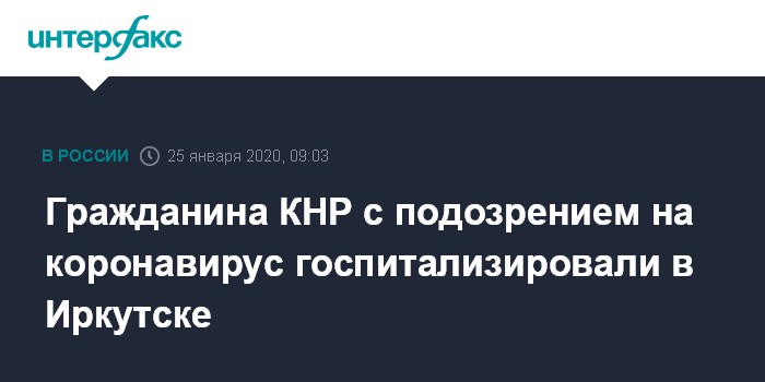Москва. 25 января. INTERFAX.RU - Гражданина Китая, прибывшего в пятницу в Иркутск из Пекина, госпитализировали в инфекционную больницу с подозрением на коронавирусную инфекцию, сообщила пресс-служба правительства региона.