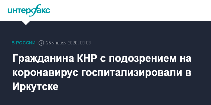 Гражданина КНР с подозрением на коронавирус госпитализировали в Иркутске