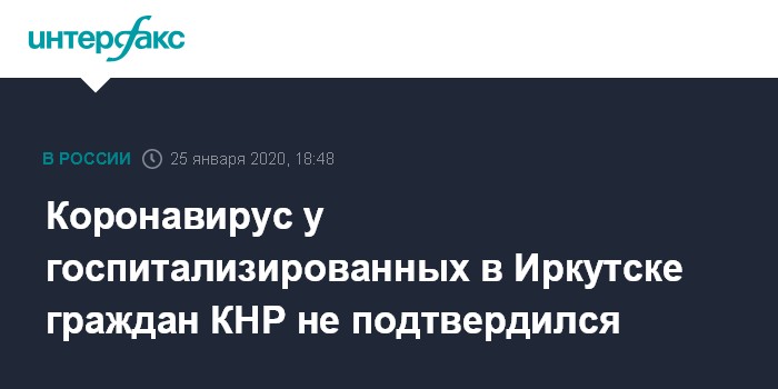 Коронавирус у госпитализированных в Иркутске граждан КНР не подтвердился