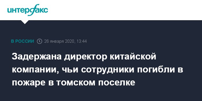 Задержана директор китайской компании, чьи сотрудники погибли в пожаре в томском поселке
