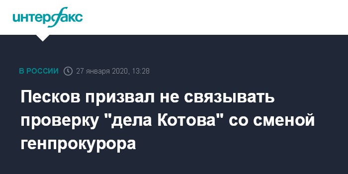 Москва. 27 января. INTERFAX.RU - Поручение президента РФ Владимира Путина организовать проверку законности уголовного преследования фигуранта "московского дела" Константина Котова не связана с кадровыми перестановками в Генпрокуратуре, сообщил пресс-секретарь главы государства Дмитрий Песков в понедельник журналистам.