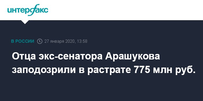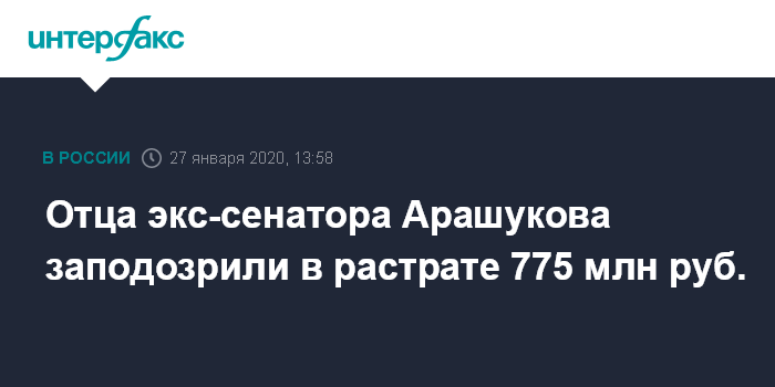 Отца экс-сенатора Арашукова заподозрили в растрате 775 млн руб.