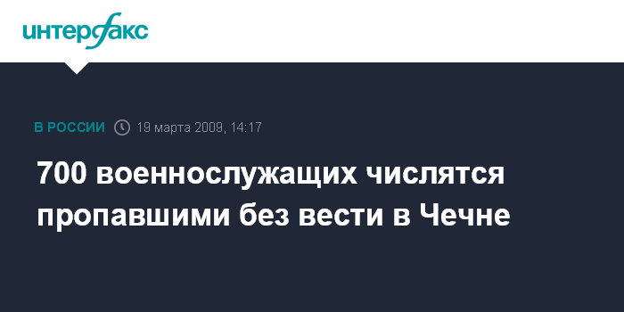 700 военнослужащих числятся пропавшими без вести в Чечне