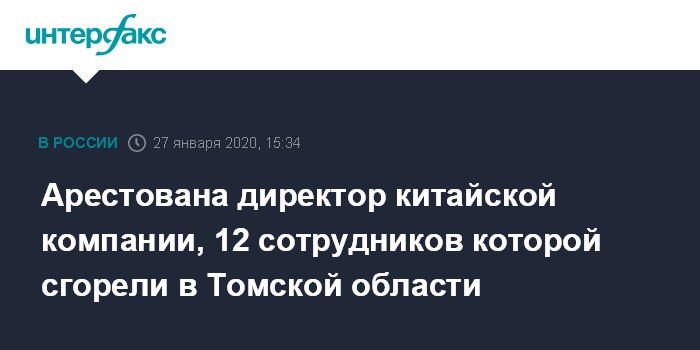 Арестована директор китайской компании, 12 сотрудников которой сгорели в Томской области