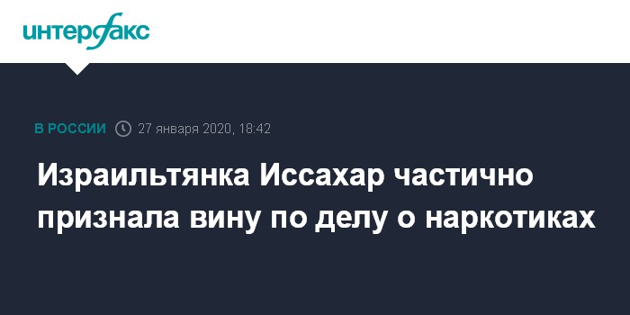 Москва. 27 января. INTERFAX.RU - Израильтянка Наама Иссахар, осужденная в России за контрабанду и хранение наркотиков, частично признает вину, сообщила журналистам зампред комиссии, уполномоченный по правам человека в Московской области Екатерина Семенова.
