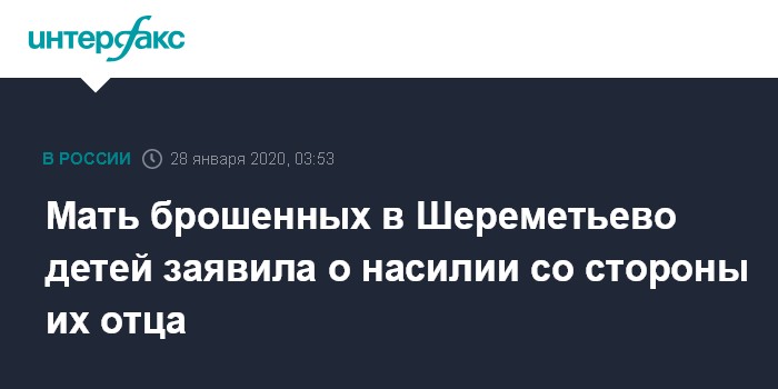 26 января мужчина, прилетевший из Хабаровска в Шереметьево, оставил в аэропорту двух мальчиков 2011 и 2014 годов рождения. Возбуждено уголовное дело по ст. 125 УК РФ ("Оставление в опасности").