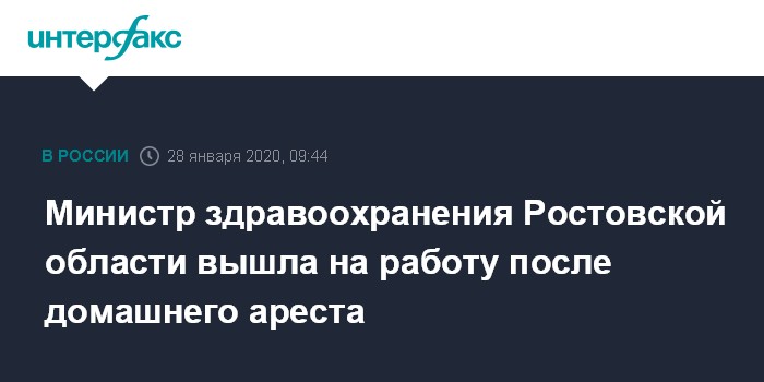 Министр здравоохранения Ростовской области вышла на работу после домашнего ареста