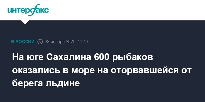 Москва. 28 января. INTERFAX.RU - Около 600 поклонников подледной рыбалки на юге Сахалина вновь оказались отрезанными от берега - на оторвавшейся от припая льдине, сообщает пресс-служба ГУ МЧС по Сахалинской области.