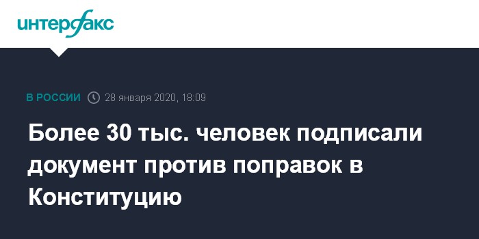 Москва. 28 января. INTERFAX.RU - Под манифестом против поправок в российскую Конституцию поставили подписи свыше 30 тысяч человек, сообщили в пресс-службе "Открытой России", которая является организатором проекта.