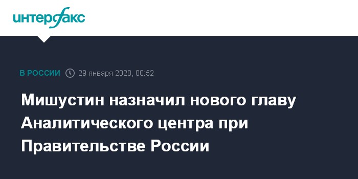 Мишустин назначил нового главу Аналитического центра при Правительстве России