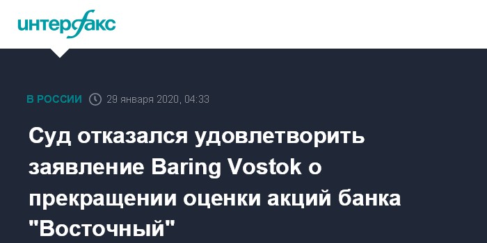 Суд отказался удовлетворить заявление Baring Vostok о прекращении оценки акций банка "Восточный"