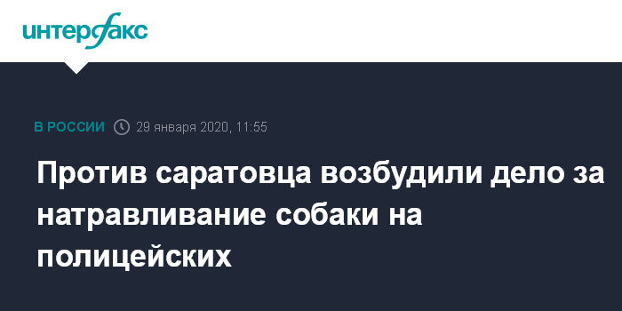 Москва. 29 января. INTERFAX.RU - Следственные органы Саратова возбудили уголовное дело в отношении местного жителя, натравившего свою собаку на полицейских, сообщается на сайте регионального СУ СКР в среду.