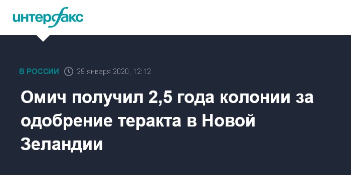 Омич получил 2,5 года колонии за одобрение теракта в Новой Зеландии
