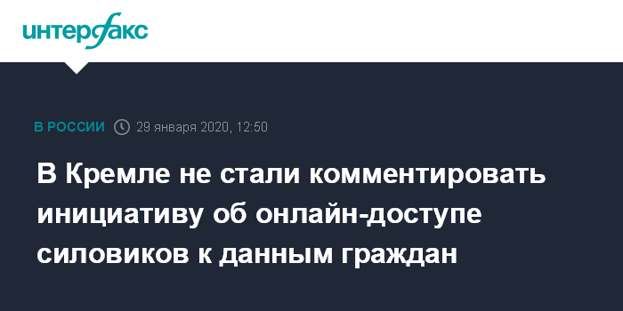 В Кремле не стали комментировать инициативу об онлайн-доступе силовиков к данным граждан