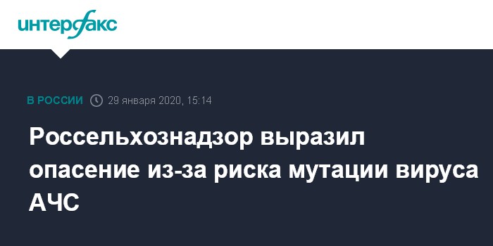 Москва. 29 января. INTERFAX.RU - Вероятность мутации вируса африканской чумы свиней (АЧС), которая сейчас не представляет опасности для человека, исключать нельзя, считают эксперты "Федерального центра охраны здоровья животных", подведомственного Россельхознадзору.