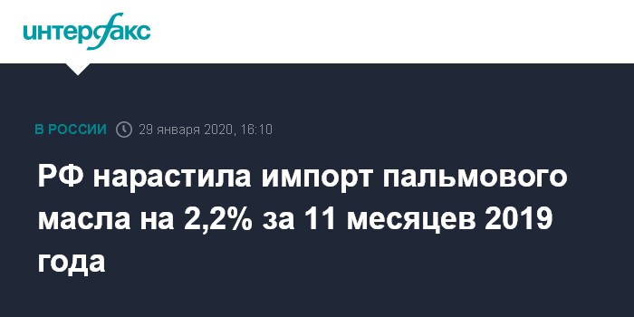 РФ нарастила импорт пальмового масла на 2,2% за 11 месяцев 2019 года