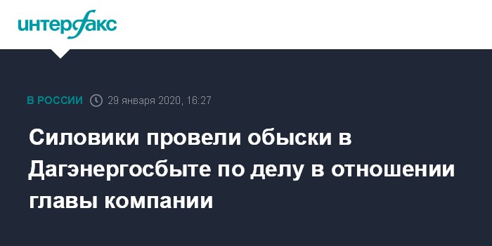 В свою очередь в компании "Россети Северный Кавказ", под управлением которой находится "Дагэнергосбыт", "Интерфаксу" сообщили, что специальные мероприятия проводятся в целях декриминализации внутри отрасли.