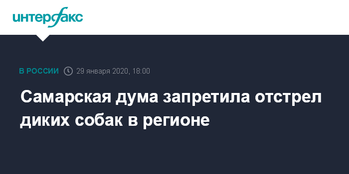 Москва. 29 января. INTERFAX.RU - Самарская губернская дума убрала разрешение на отстрел диких собак из регионального закона об охоте. Ранее в января областной департамент охоты сообщил, что отстрел собак в регионе разрешен и сослался на закон, принятый несколько лет назад.