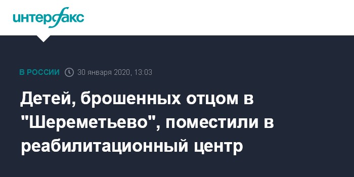 Москва. 30 января. INTERFAX.RU - Детей, оставленных отцом в московском аэропорту Шереметьево, обследовали в больнице и перевели в социально-реабилитационный центр, сообщает в фейсбуке Институт уполномоченных по правам ребенка в РФ.