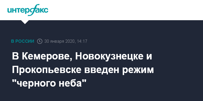 Москва. 30 января. INTERFAX.RU - Администрация Кемеровской области ввела с четверга так называемый "режим черного неба" в Кемерове, Новокузнецке и Прокопьевске, сообщила пресс-служба правительства региона.