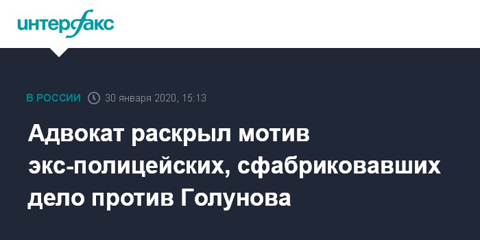 Москва. 30 января. INTERFAX.RU - Адвокат правозащитной организации "Открытки" Сергей Бадамшин сообщил "Интерфаксу", что бывший начальник отделения по контролю за оборотом героина и синтетических наркотиков УВД по ЗАО Москвы Игорь Ляховец и его подчиненные, причастные к задержанию журналиста Ивана Голунова, хотели повышения по службе.
