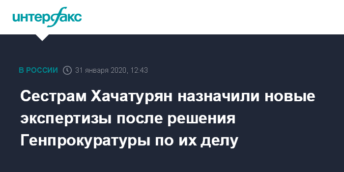 В конце 2019 года стало известно, что Генпрокуратура вернула в Следственный комитет РФ (СКР) материалы в отношении сестер Хачатурян с обвинительным заключением в отношении двух старших сестер и постановлением о применении мер медицинского характера в отношении младшей девушки, отказавшись передавать дела в суд. СКР, в свою очередь, оспорил "отказное" постановление надзора у генерального прокурора, которые подтвердил решение о возврате дела на доследование.