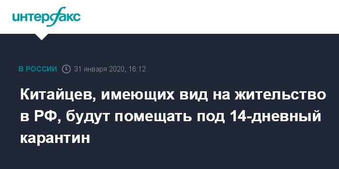 Китайцев, имеющих вид на жительство в РФ, будут помещать под 14-дневный карантин