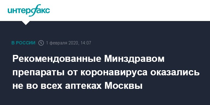 Москва. 1 февраля. INTERFAX.RU - В ряде аптек Москвы нет в наличии трех из четырех рекомендуемых Минздравом и Роспотребнадзором препаратов для профилактики и лечения у взрослых коронавирусной инфекции.
