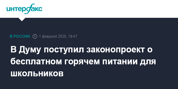 Москва. 1 февраля. INTERFAX.RU - В Госдуму поступили законодательные инициативы президента РФ об обеспечении школьников бесплатным горячим питанием, сообщает пресс-служба нижней палаты парламента РФ.
