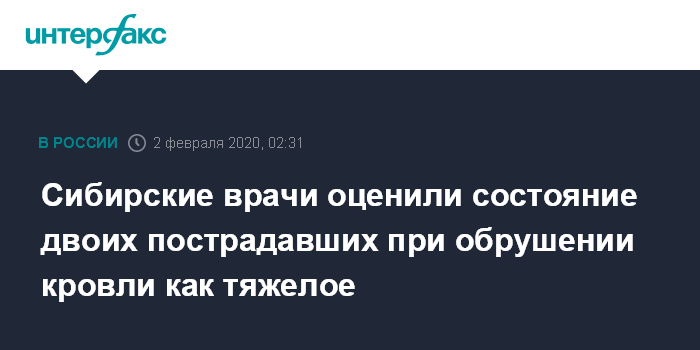 Сибирские врачи оценили состояние двоих пострадавших при обрушении кровли как тяжелое