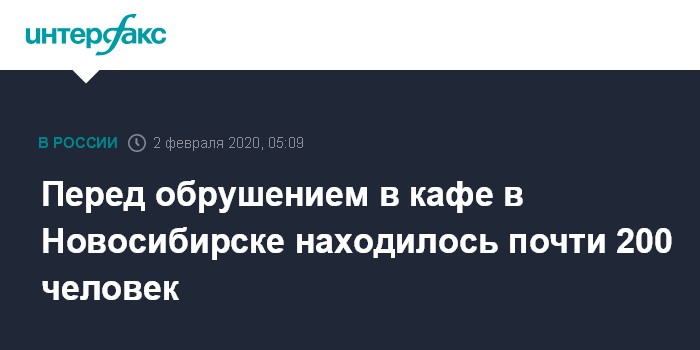 Москва. 2 февраля. INTERFAX.RU - До прибытия спасателей в кафе, кровля которого обрушилась в Новосибирске, находилось 190 человек, сообщает в воскресенье ГУ МЧС России по региону.