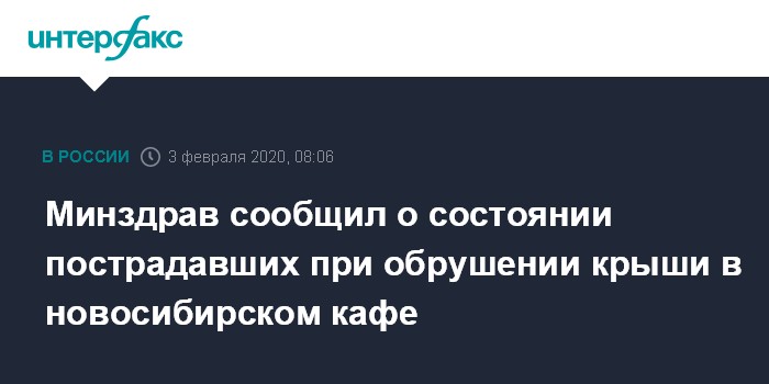 Минздрав сообщил о состоянии пострадавших при обрушении крыши в новосибирском кафе