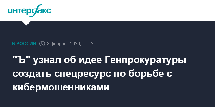 Москва. 3 февраля. INTERFAX.RU - Генпрокуратура выступила с идеей создания спецресурса для сбора информации от граждан о кибермошенничествах в финансовой сфере, предполагается, что спецресурс будет работать через портал госуслуг, пишет в понедельник "Коммерсантъ".