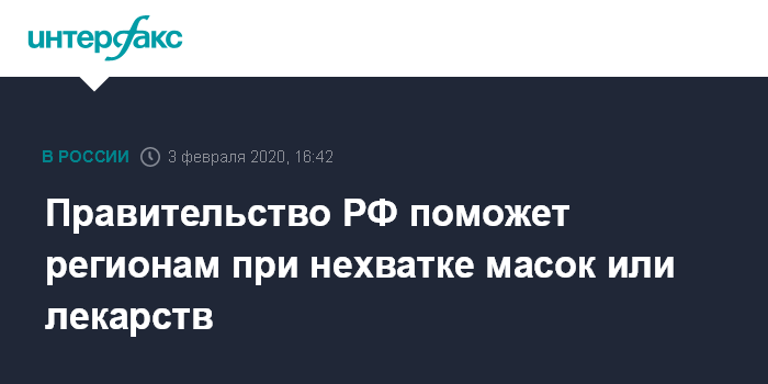 Правительство РФ поможет регионам при нехватке масок или лекарств