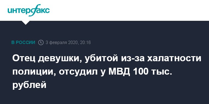 Отец девушки, убитой из-за халатности полиции, отсудил у МВД 100 тыс. рублей