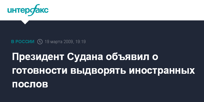 Йоханнесбург. 19 марта. INTERFAX.RU - Судан готов выдворять послов иностранных государств в случае, если они превысят полномочия, приводит в четверг слова президента Судана Омара Башира интернет-сайт южноафриканского издания Mail and Guardian.