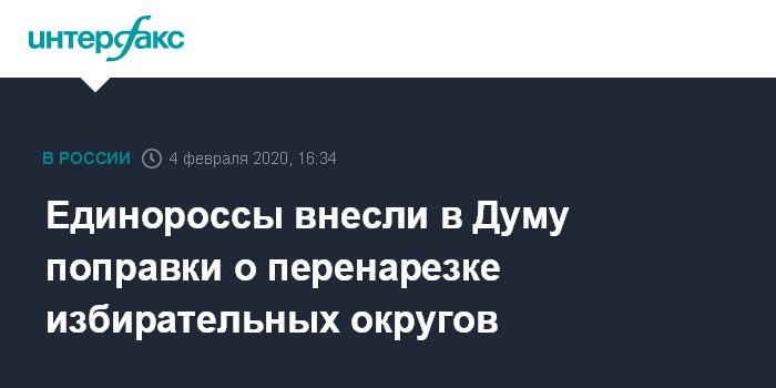 Москва. 4 февраля. INTERFAX.RU - Группа депутатов от "Единой России" внесла в Госдуму законопроект о возможности изменять схему и границы избирательных округов в зависимости от изменения численности населения. Авторы поправок - Дмитрий Вяткин, Евгений Ревенко и Дмитрий Белик.