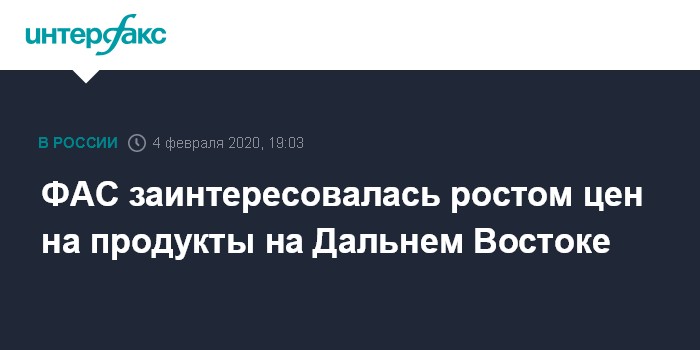 Москва. 4 февраля. INTERFAX.RU - Федеральная антимонопольная служба (ФАС) России проверит обоснованность роста цен на продукты питания на Дальнем Востоке из-за распространения коронавируса в Китае.