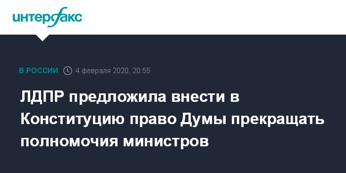 Москва. 4 февраля. INTERFAX.RU - ЛДПР предлагает внести в Конституцию положение о проведении выборов только по партийным спискам и праве Госдумы не только утверждать, но и прекращать полномочия членов кабинета министров.