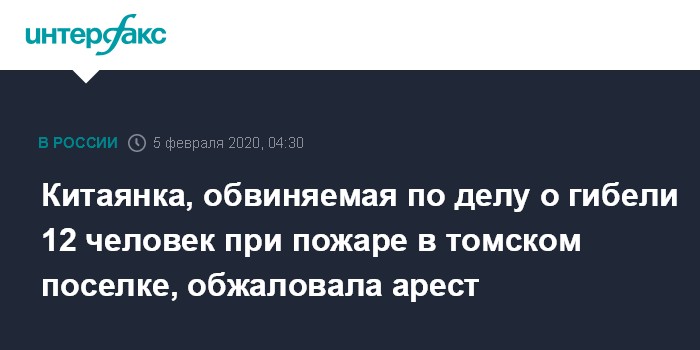 Китаянка, обвиняемая по делу о гибели 12 человек при пожаре в томском поселке, обжаловала арест
