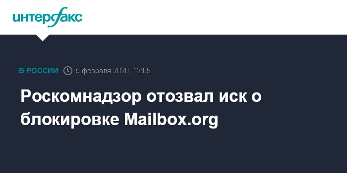 Москва. 5 февраля. INTERFAX.RU - Роскомнадзор отозвал иск о блокировке на территории РФ немецкого почтового сервиса Mailbox.org, после того как компания-владелец предоставила данные для внесения в реестр операторов распространения информации в интернете, заявили в пресс-службе ведомства.