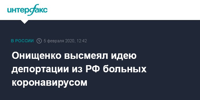 Вместе с тем Онищенко считает, что, возможно, о высылке мигрантов, являющихся носителями коронавируса, и можно было бы подумать.