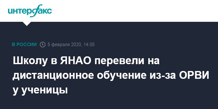Москва. 5 февраля. INTERFAX.RU - В Ноябрьске школу №8 перевели на 14 дней на дистанционное обучение после того, как одна из учениц попала в больницу с предварительным диагнозом ОРВИ. В управлении Роспотребнадзора по Ямало-Ненецкому автономному округу это решение связали с ситуацией вокруг "уханьского коронавируса".