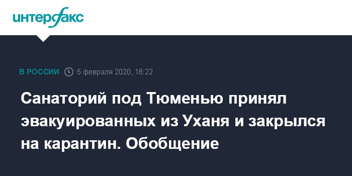 Санаторий под Тюменью принял эвакуированных из Уханя и закрылся на карантин. Обобщение