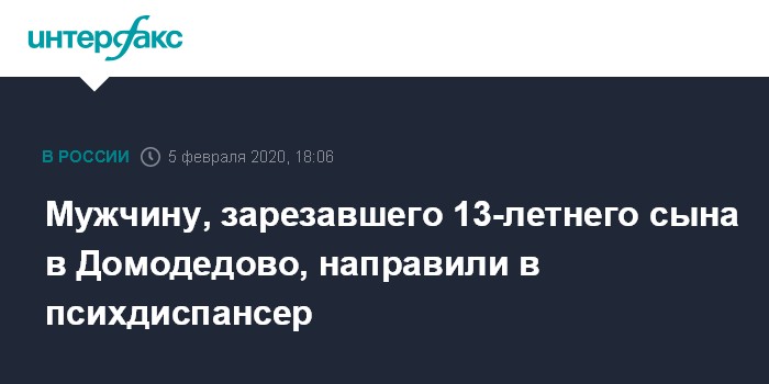 Мужчину, зарезавшего 13-летнего сына в Домодедово, направили в психдиспансер