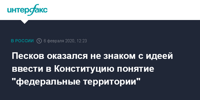Песков оказался не знаком с идеей ввести в Конституцию понятие "федеральные территории"